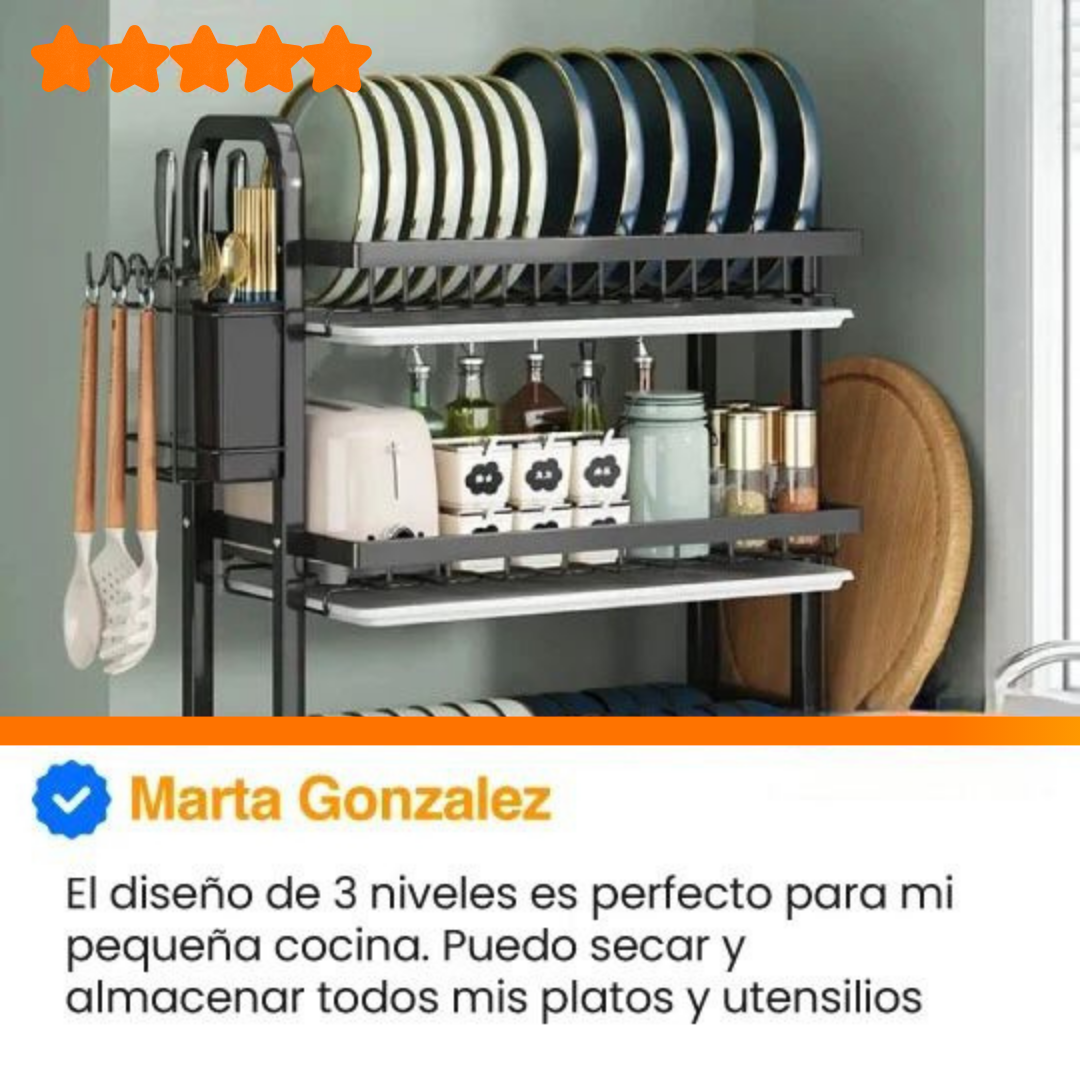 ¡Facilita tu Vida en la Cocina con el Escurridor de Platos de 3 Niveles!