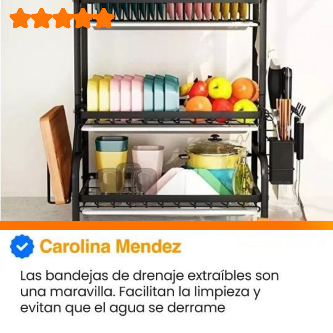 Es Ideal para cualquier hogar que busque una forma práctica y estilizada de secar y almacenar platos, cubiertos y otros utensilios de cocina.