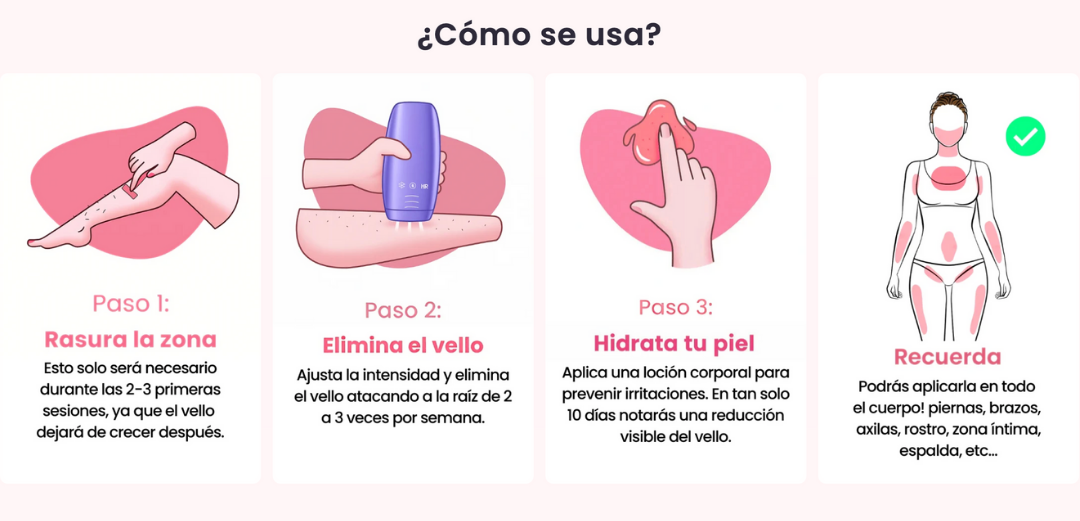 Después de cada tratamiento, notará que el vello vuelve a crecer más lentamente y con menos densidad. A medida que continúe, conseguirá eliminar todo el vello.